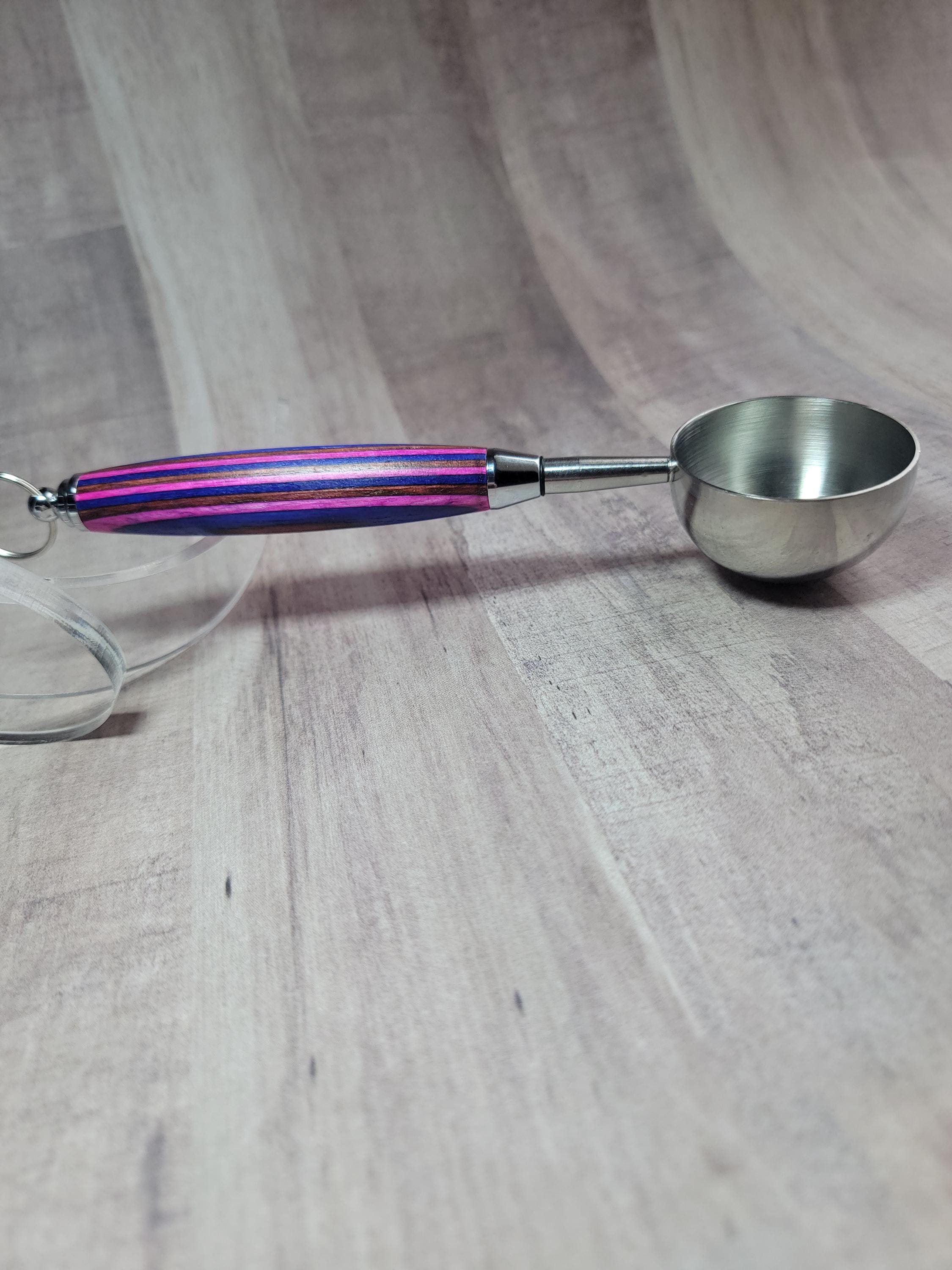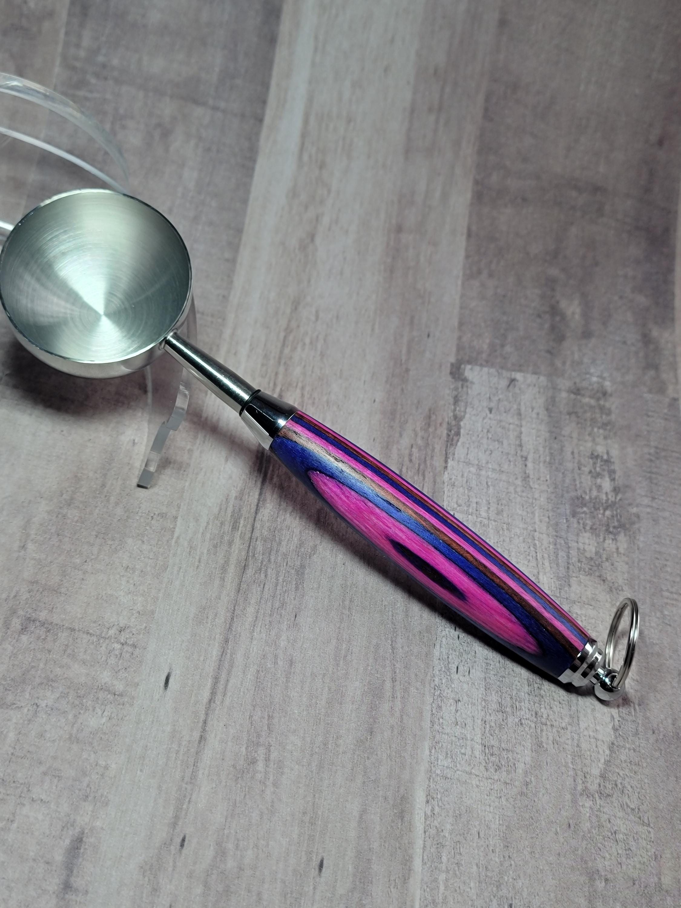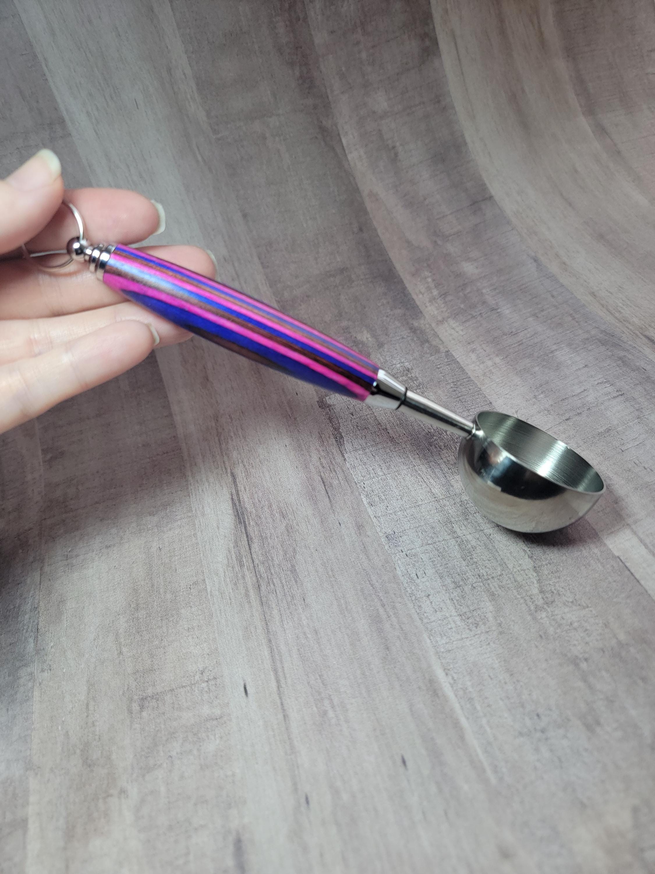 This stunning handmade coffee scoop is made from dyed birch wood.