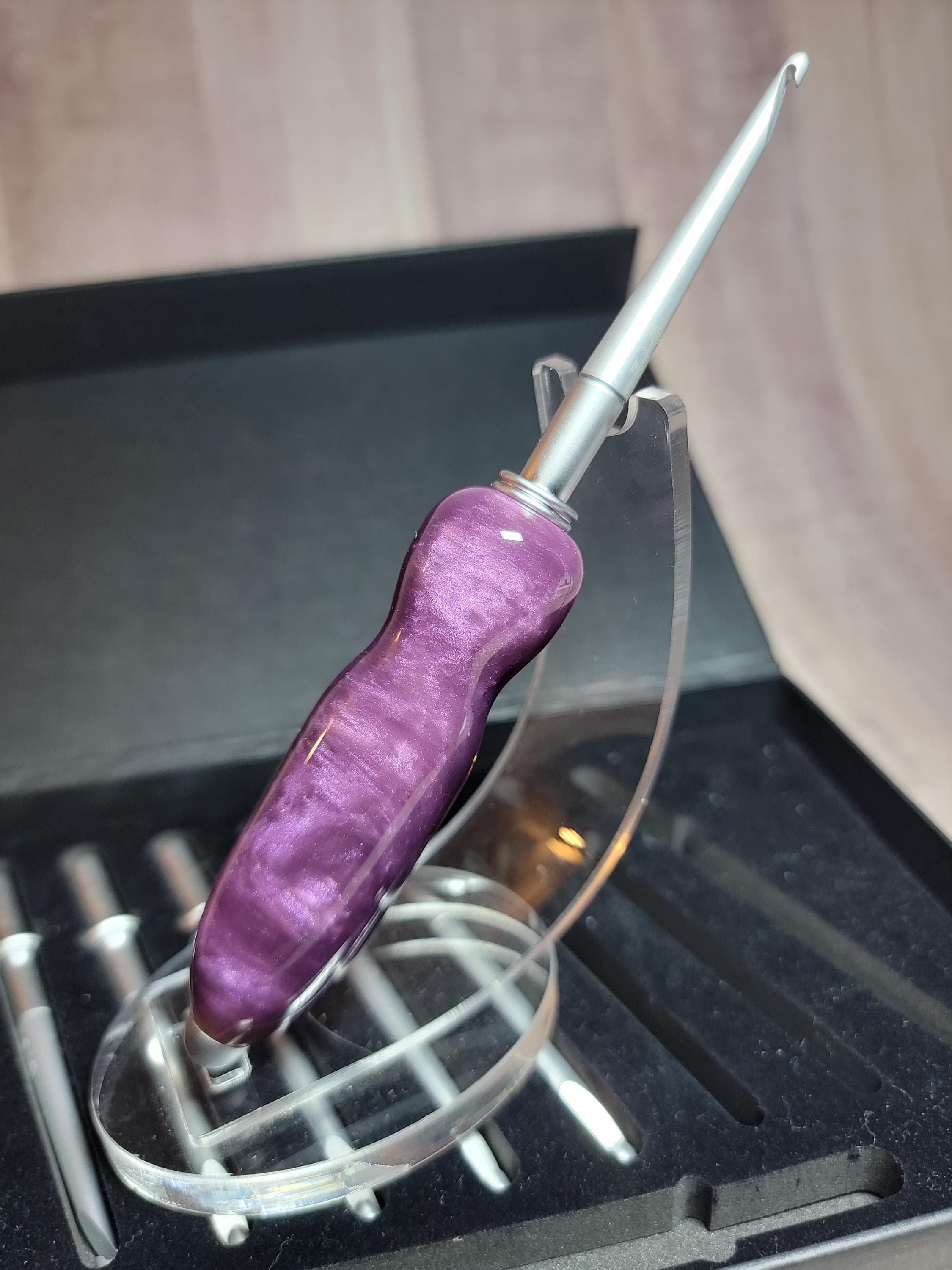 Handmade crochet set, interchangeable hook sizes C, D, E, F, G, and H. Also available including sizes I,J,K