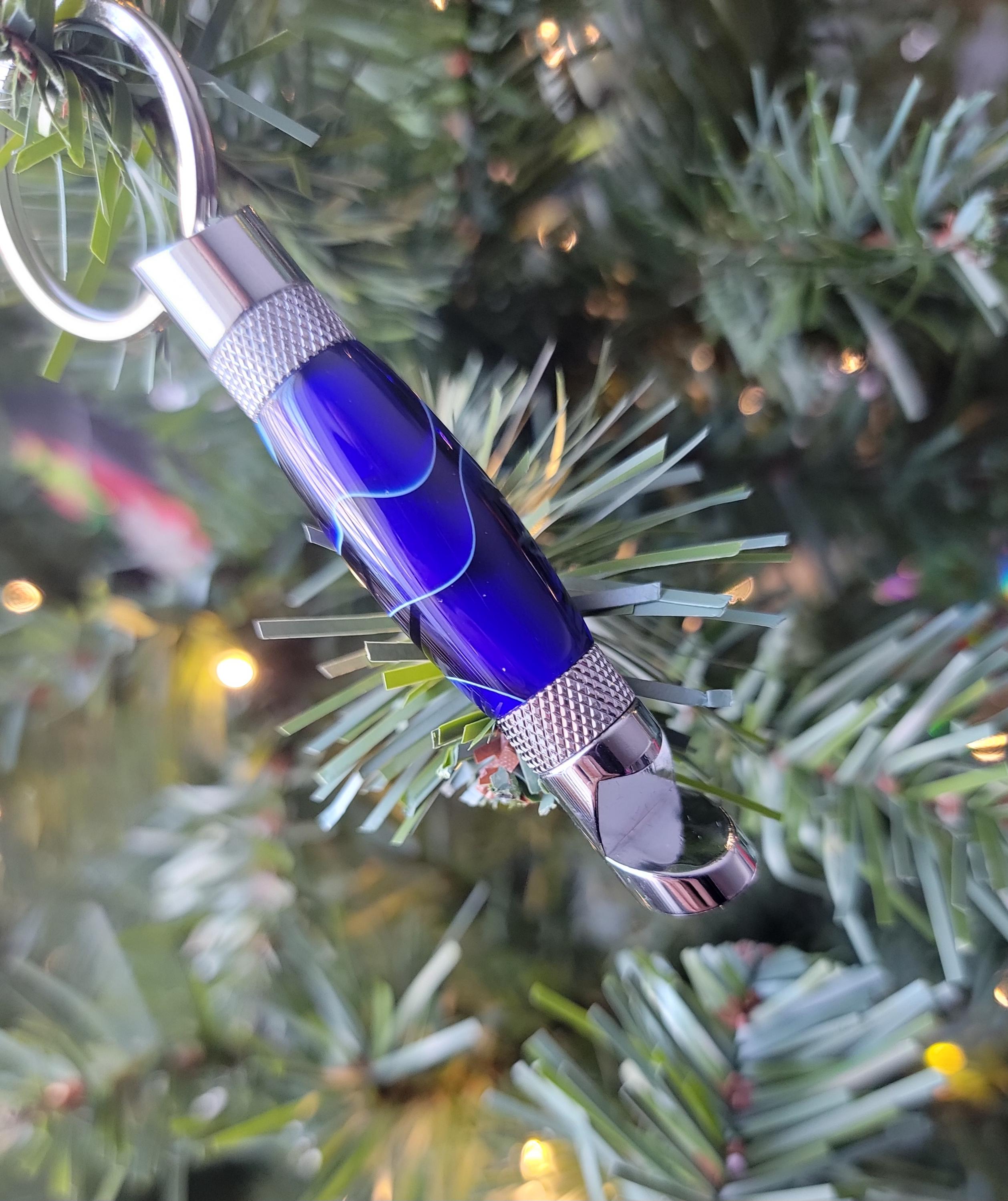This bottle opener was hand turned in our Metro Detroit workshop from a multicolored acrylic. It features a keychain handle to carry it with you everywhere.