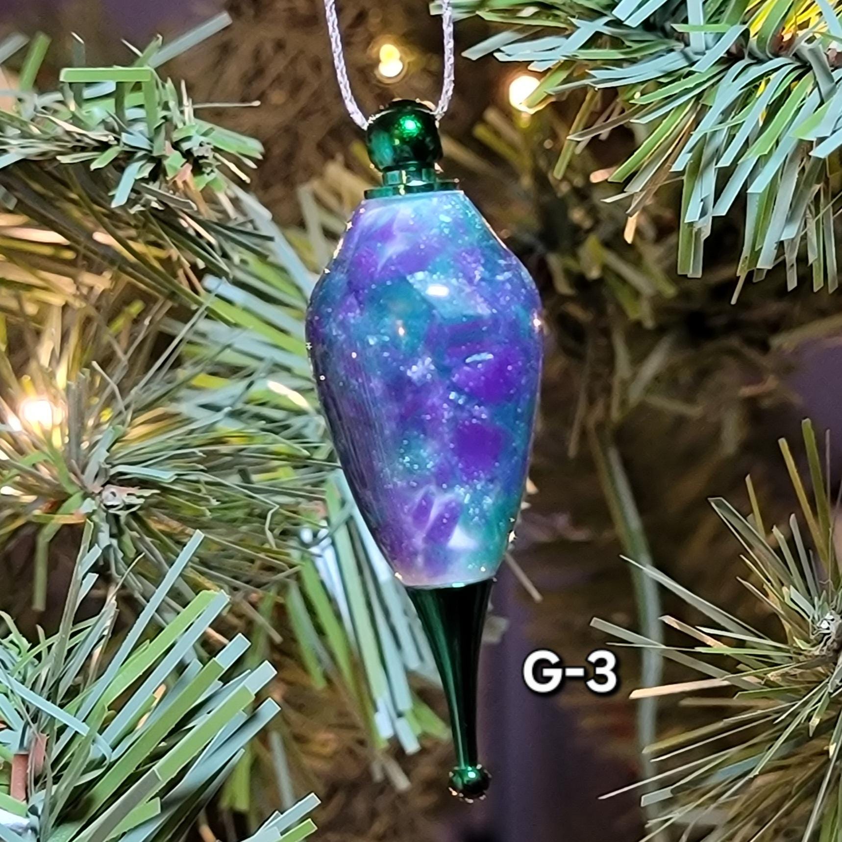 When we make our various items on our lathes, we are often left with a small piece of acrylic leftover. We have now turned those into beautiful ornaments for your tree. Ornaments measure an average of 2-3 inches in total length, and around 1 inch in width.
