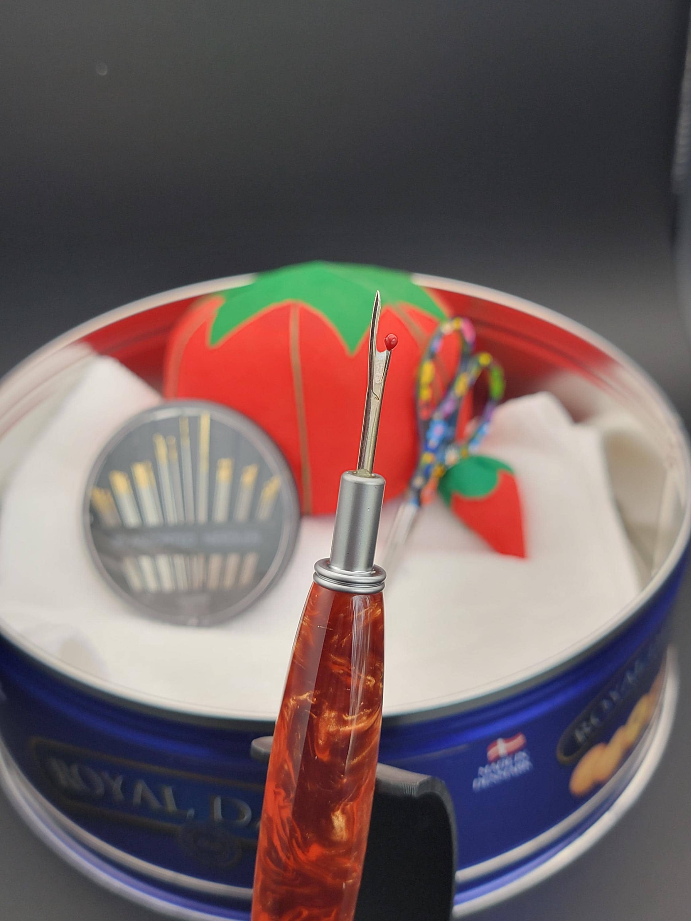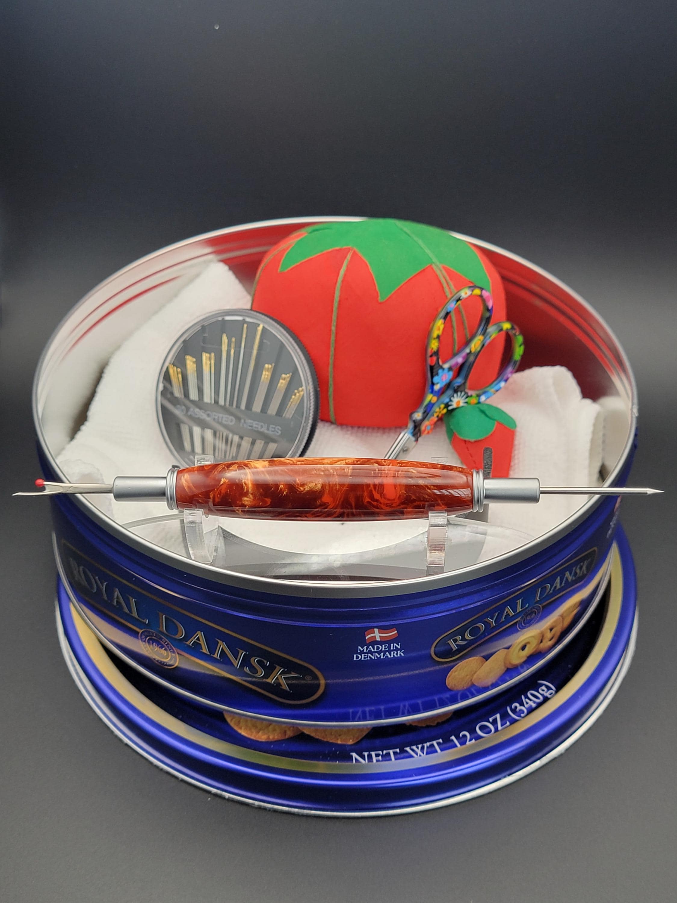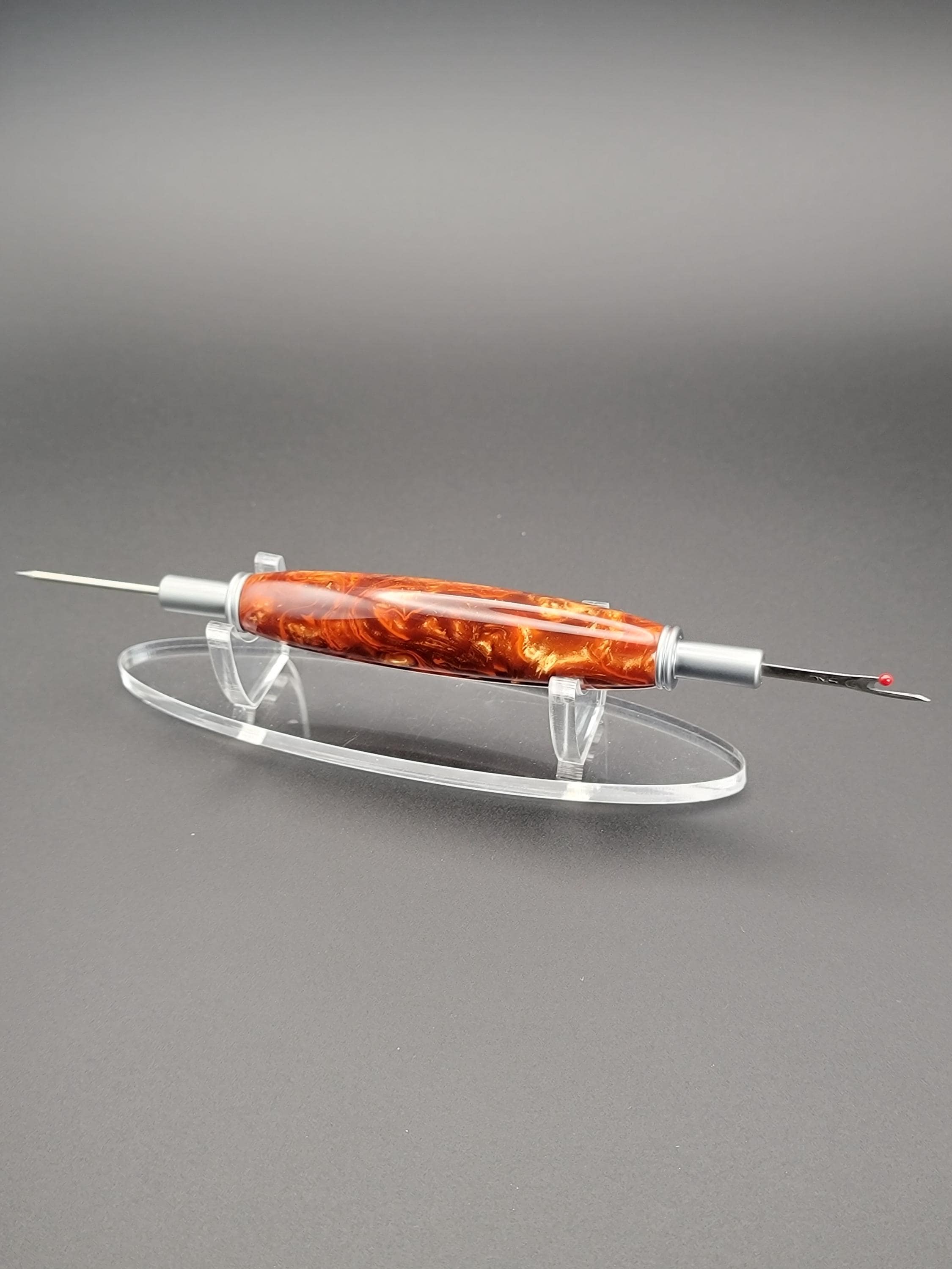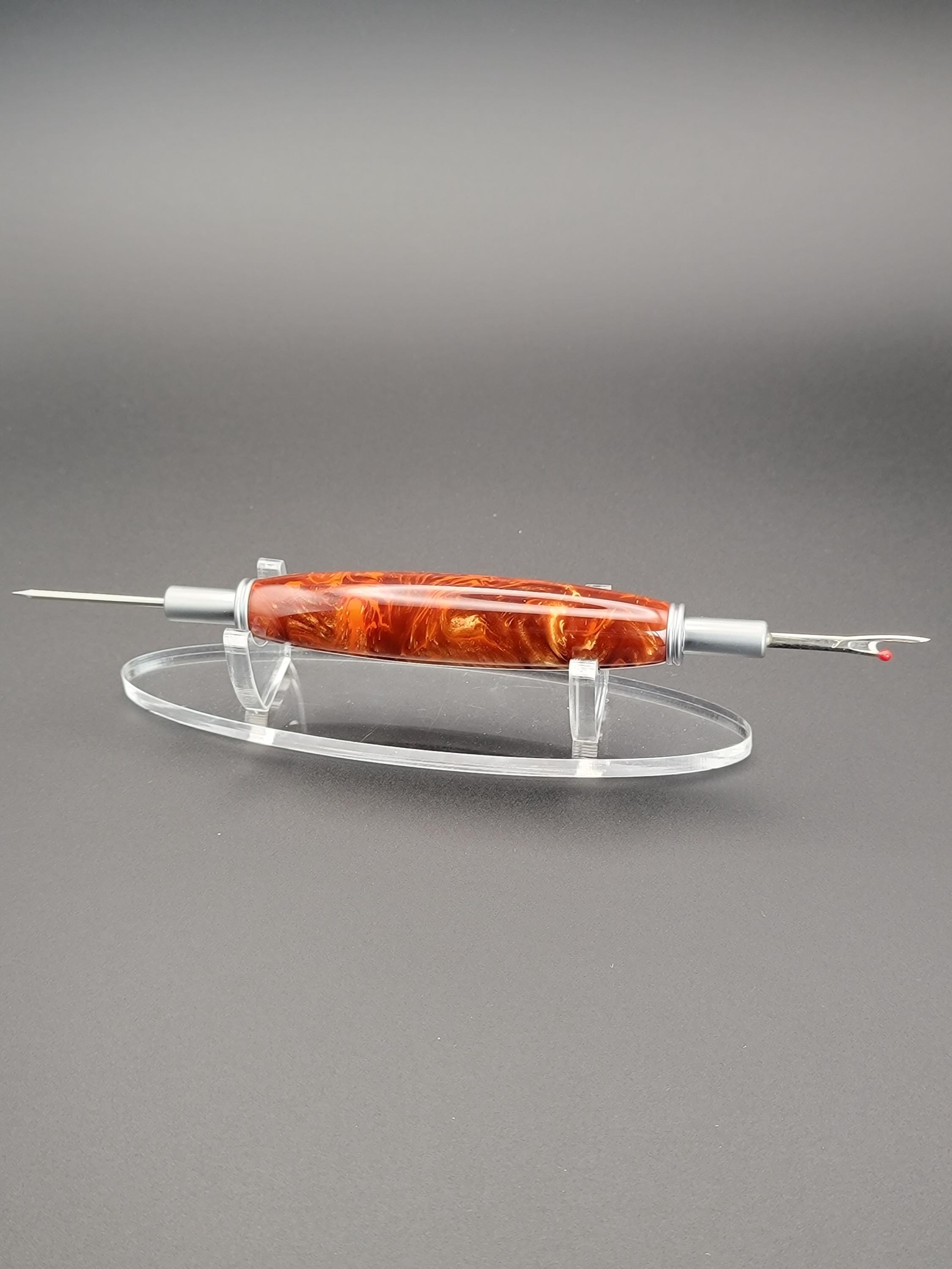 This sewing and quilting tool was hand turned in our Metro Detroit workshop from a bronze and orange acrylic.
