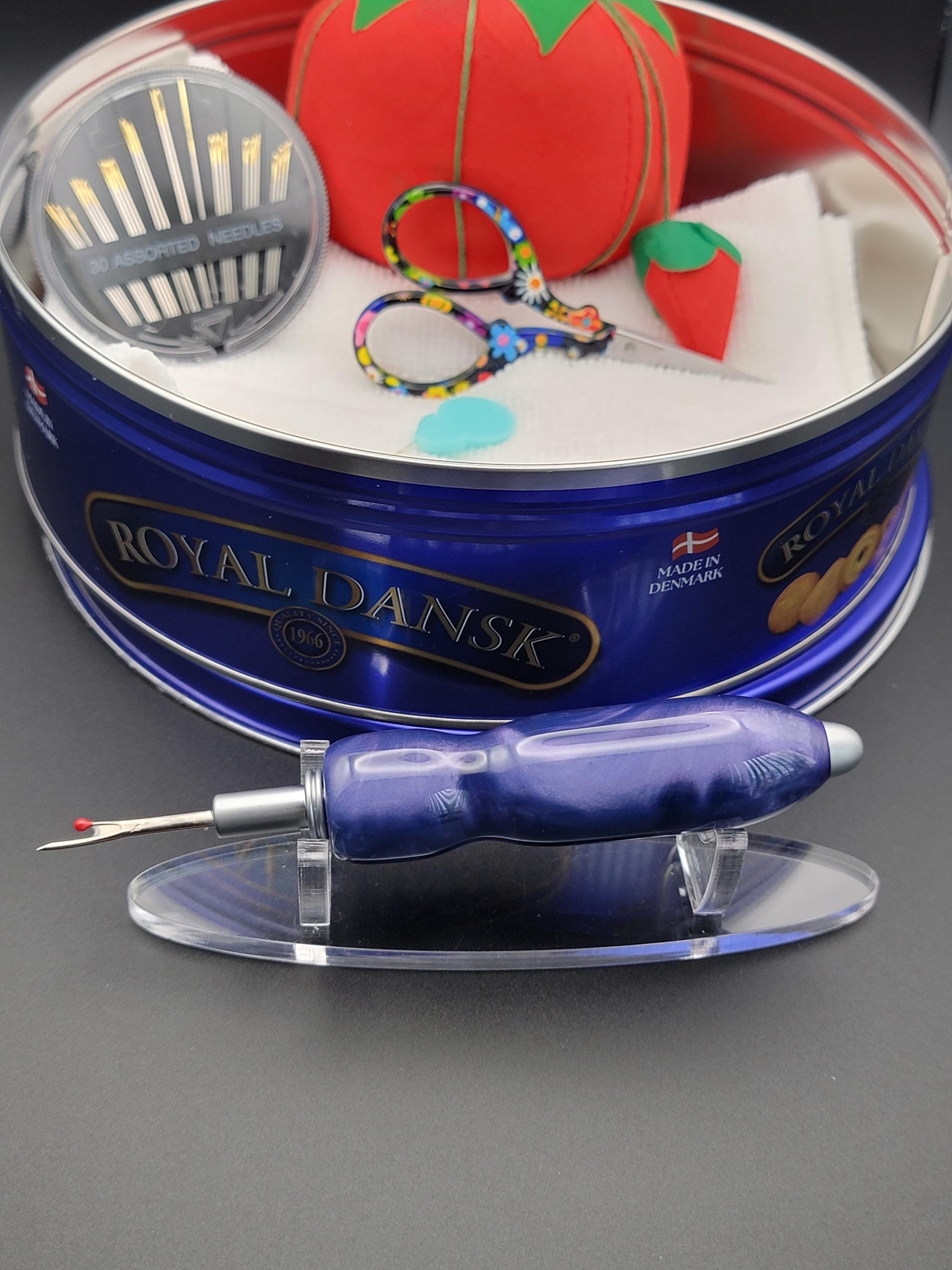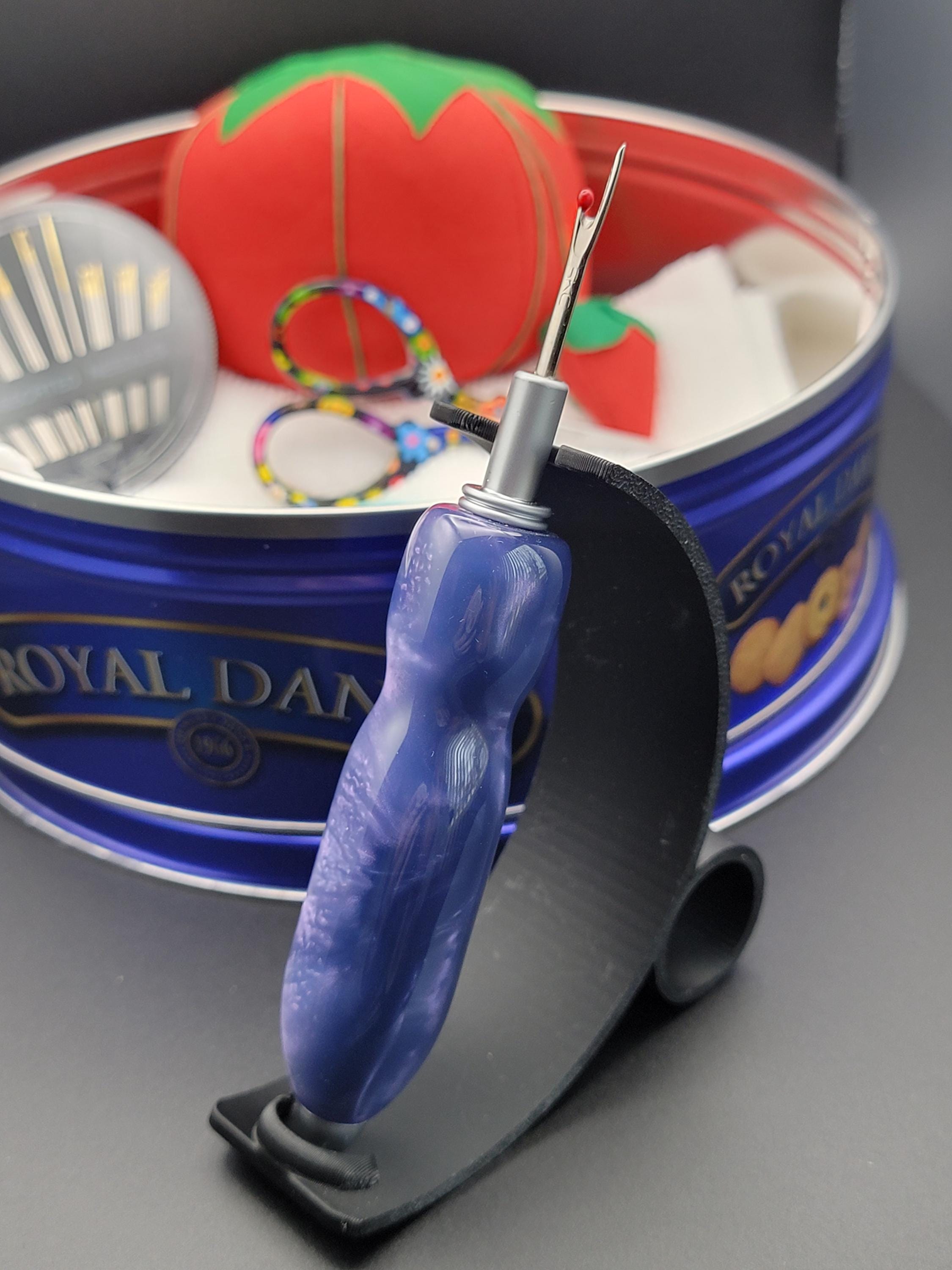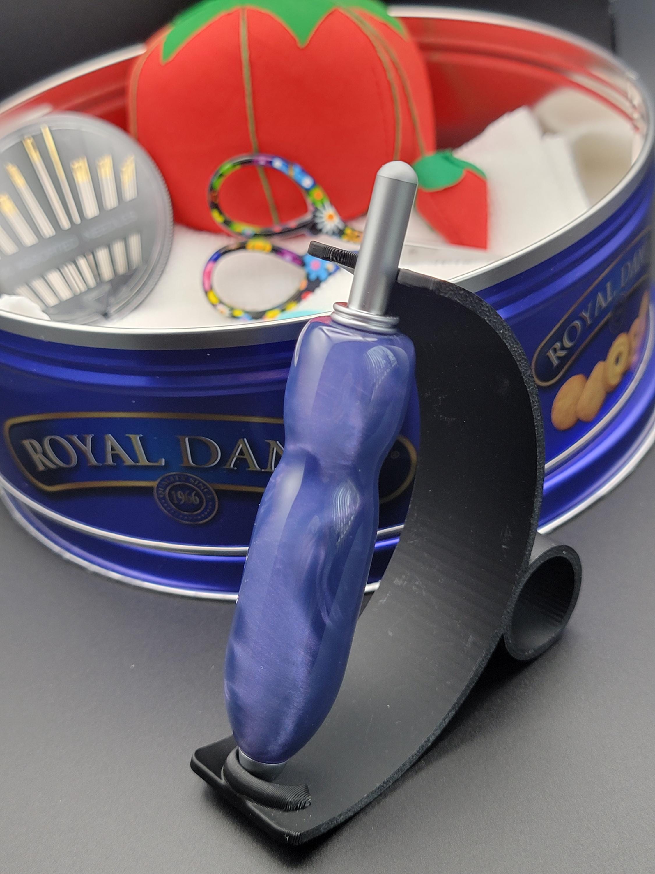 This ergonomic seam ripper was hand turned in our Metro Detroit workshop from a swirly purple acrylic.