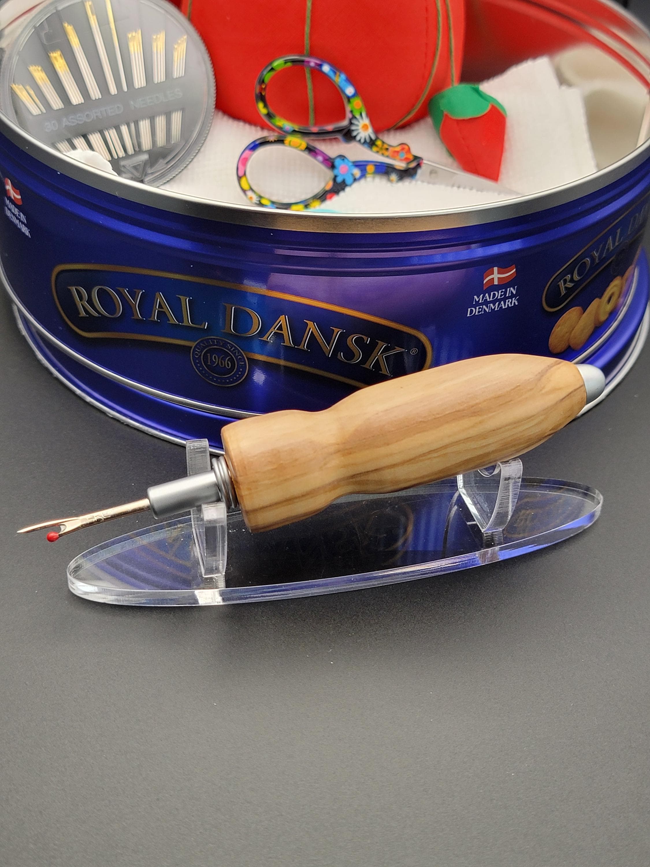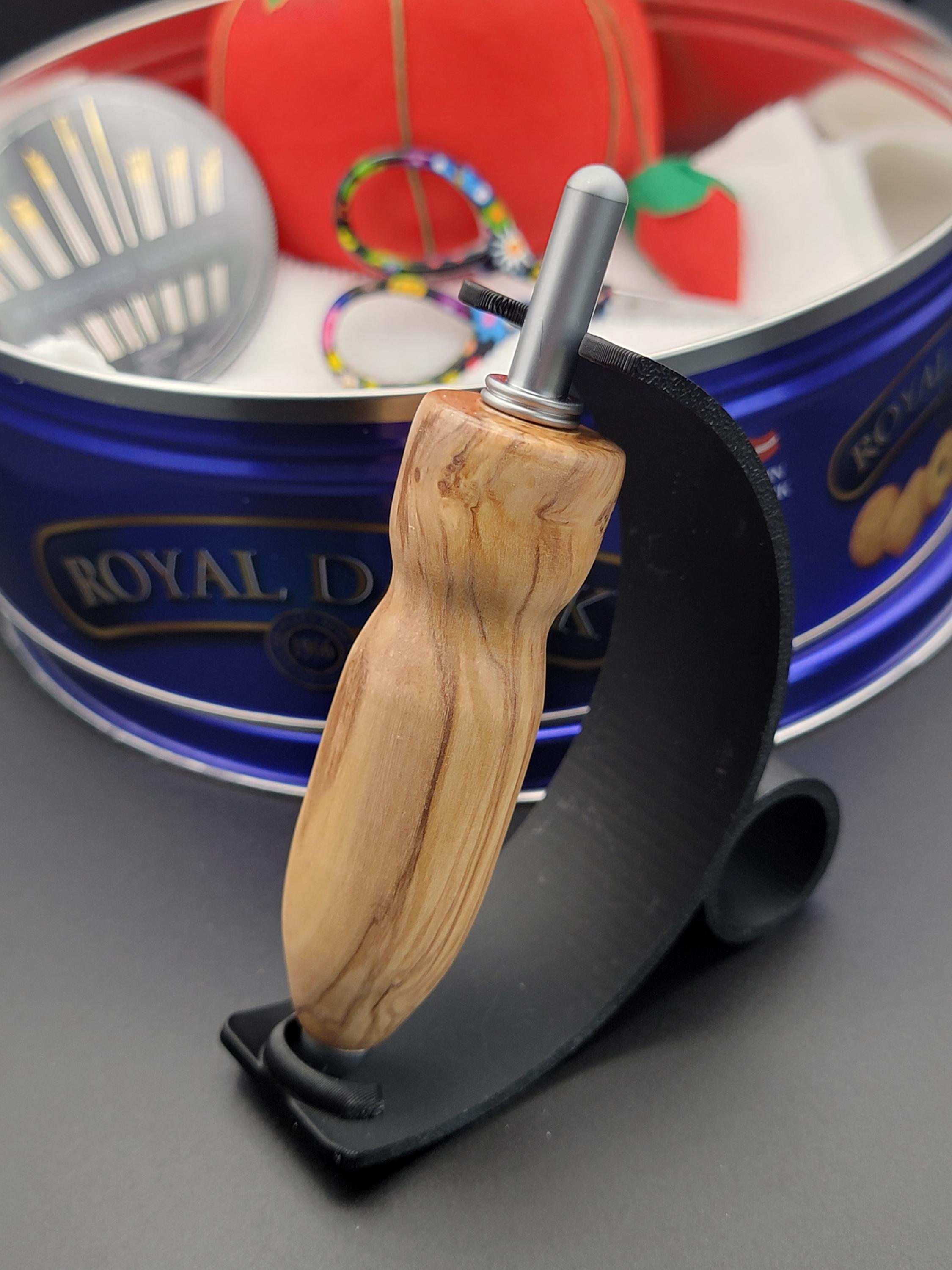This ergonomic seam ripper was hand turned in our Metro Detroit workshop from a beautiful olivewood hardwood.