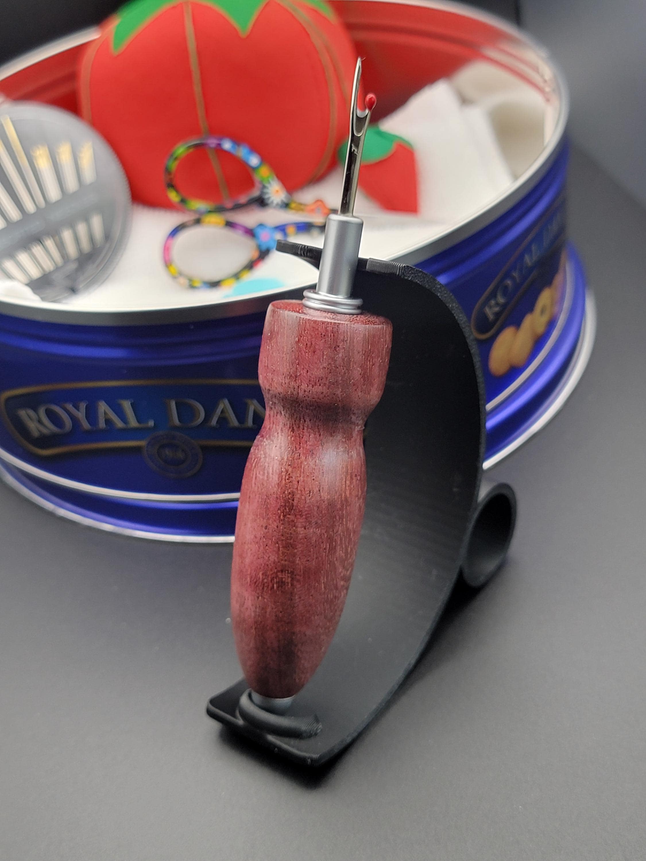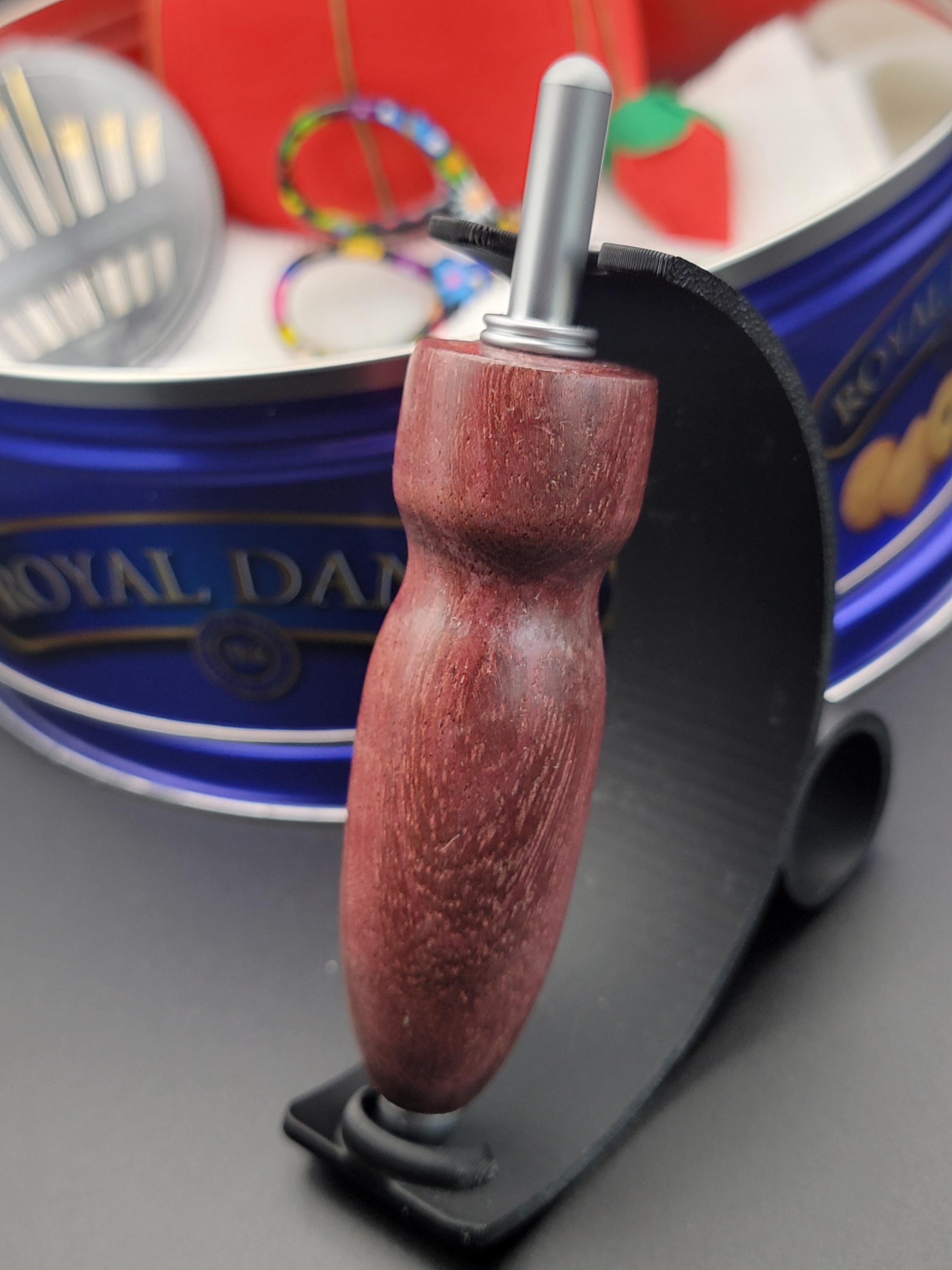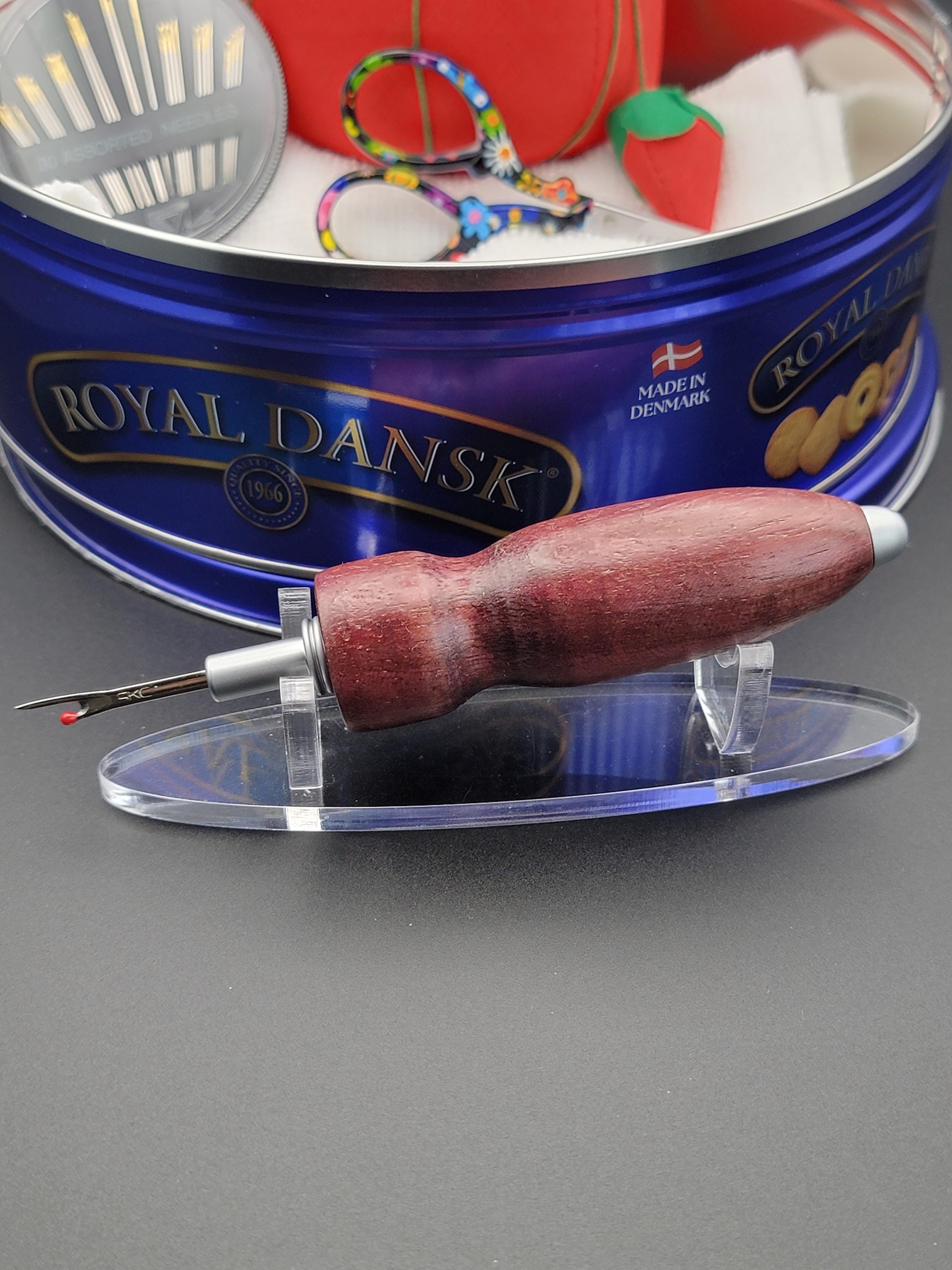 This ergonomic seam ripper was hand turned in our Metro Detroit workshop from a beautiful dark purpleheart hardwood.